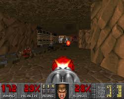 Doom, el famoso juego en là nea jugable. Para empezar, haga clic en "Inicio".Desplazamiento: flechas del teclado. Disparos: "x".