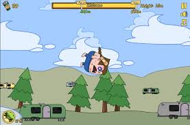 Este joven borrachuzo es capaz de cualquier cosa por conseguir unas cervezas. Conviértete en uno de sus "amigos" paletos y empújale con una escoba desde su caravana para que encuentre tantas bebidas de cebada como pueda en su accidentado vuelo.